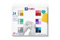 Staedtler FIMO 8013 C. Soort: Boetseerklei, Kleur van het product: Zwart, Blauw, Koper, Goud, Groen, Grijs, Parel, Roze, Paars, Rood, Roze, Zilver, Wit, Geel, Aantal stuks: 24 stuk(s). Gewicht: 600 g, Gewicht per stuk: 25 g. Aantal per verpakking: 24 stuk(s)