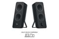 Logitech® Z207 Bluetooth® Computer Speakers bieden 10 watt piekvermogen/5 watt RMS voor rijk stereogeluid aan je bureau. Elke speaker heeft één actieve/aangedreven driver die het volledige geluidsbereik levert, en één passieve radiator voor een groter bassbereik. Stream draadloos audio via twee Bluetooth-apparaten of verbind één apparaat via de 3,5mm-ingang. Met Easy-Switch™ van Logitech kun je naadloos schakelen tussen geluidsbronnen. Druk op de ene bron op pauze en speel het geluid af op de andere. Vooraan op de rechterspeaker kun je gemakkelijk bij de knop voor Bluetooth-koppeling, de Aan/uit- en volumeknoppen en de hoofdtelefoonaansluiting.